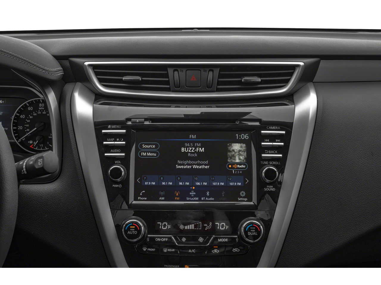 - Radio: AM/FM/CD/MP3/WMA Audio System -inc: Bose audio system w/11 speakers plus dual subwoofer, NissanConnect w/navigation featuring Apple CarPlay and Android Auto, Nissan door to door navigation w/3D building graphics and satellite imagery, connected navigation features including online POI search, door-to-door and online premium traffic information, HD Radio, SiriusXM Travel Link (weather, fuel prices, movie listings, stock info, sports and parking), SiriusXM Traffic, auxiliary audio input jack, SiriusXM satellite radio, 8" color display w/multi-touch control, 2 front illuminated USB connection ports (1 type-A, 1 type-C) for iPod interface and other compatible devices, Bluetooth® hands-free phone system, streaming audio via Bluetooth®, hands-free text-messaging assistant and 2 rear illuminated USB charge ports (1 type-A, 1 type-C)