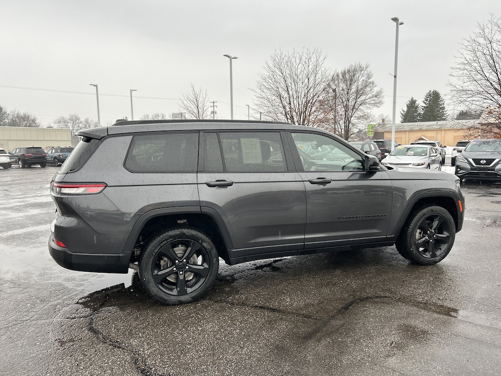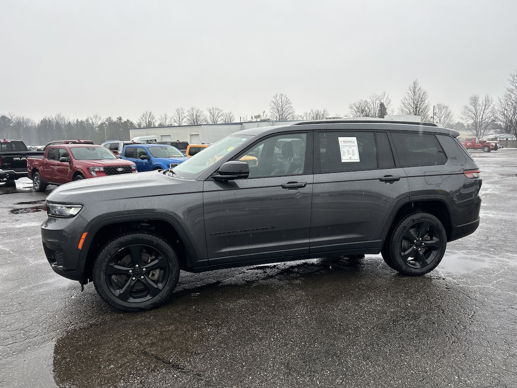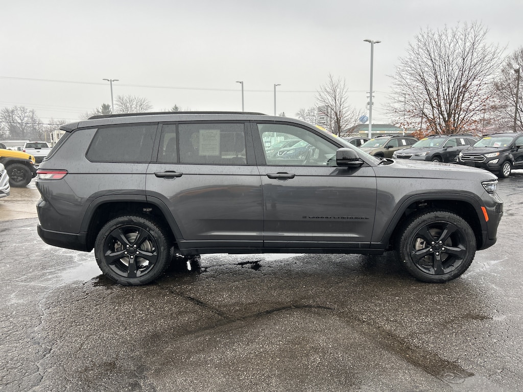 DOMINATE THE LANDSCAPE IN THIS STUNNING 2021 JEEP GRAND CHEROKEE L ALTITUDE! THIS POWERFUL RIG FEATURES THE ALTITUDE APPEARANCE PACKAGE WITH STRIKING 20-INCH GLOSS BLACK PAINTED ALUMINUM WHEELS AND GLOSS BLACK ROOF RAILS THAT COMMAND RESPECT EVERYWHERE YOU GO! TAKE CHARGE WITH THE POWER SUNROOF WHILE THE BRIDGESTONE BRAND TIRES AND FOUR WHEEL INDEPENDENT SUSPENSION ENSURE A SMOOTH AND CONFIDENT RIDE ON EVERY JOURNEY!