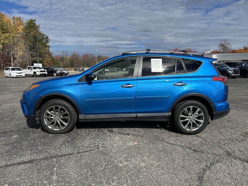 2017 Toyota RAV4 Limited AWD, Black Artificial Leather, 6 Speakers, Alloy wheels, AM/FM radio: SiriusXM, Auto High-beam Headlights, Auto-dimming Rear-View mirror, Automatic temperature control, Brake assist, Chrome wheels, Compass, Electronic Stability Control, Exterior Parking Camera Rear, Four wheel independent suspension, Front dual zone A/C, Front fog lights, Fully automatic headlights, Garage door transmitter: HomeLink, Heated door mirrors, Heated front seats, Heated Front Sport Seats, Outside temperature display, Power door mirrors, Power driver seat, Power Liftgate, Power moonroof, Radio: Entune Premium Audio with Navigation, Remote keyless entry, Roof rack, Speed-sensing steering, Steering wheel mounted audio controls, Telescoping steering wheel, Tilt steering wheel, Turn signal indicator mirrors, Wheels: 18" Alloy ALM.